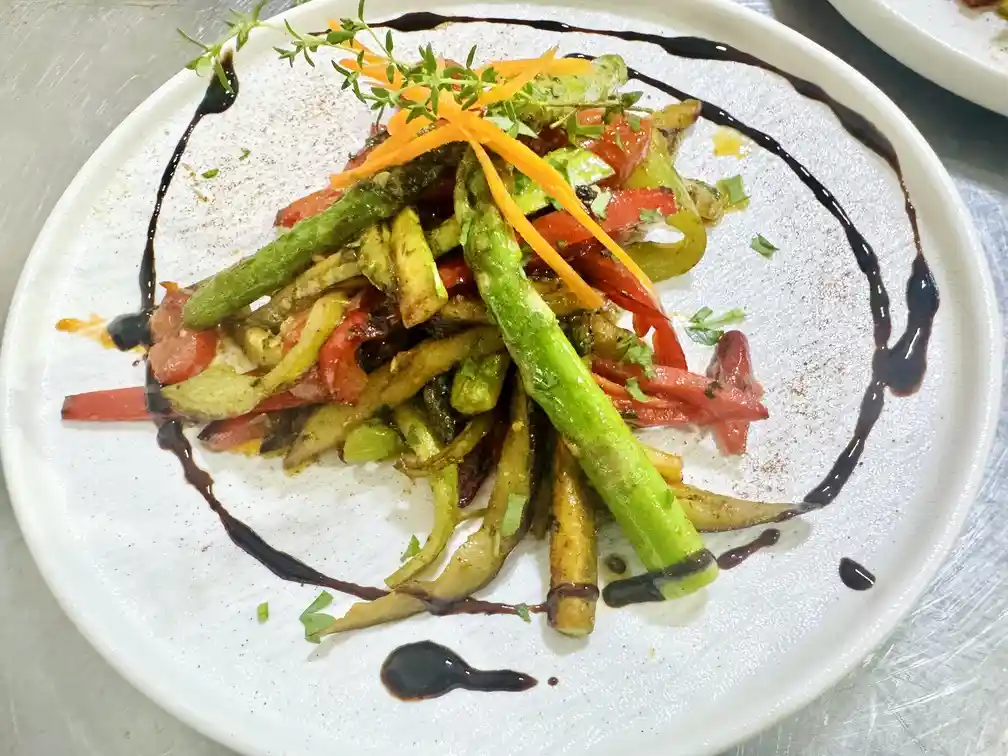 shoqeruar me rrenje selino te pjekur, salce portokalli / wit..